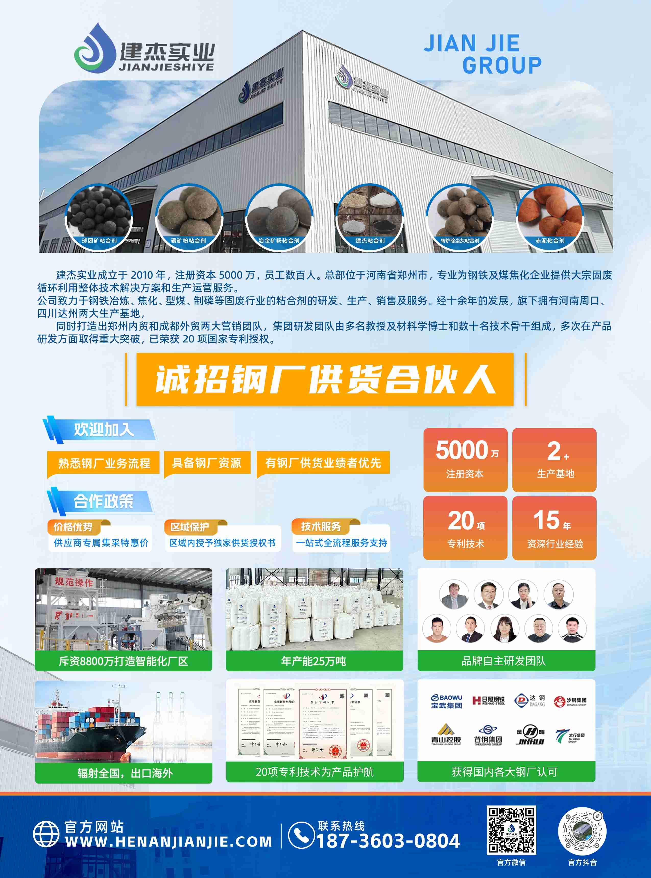 建杰實業(yè)成立于2010年,注冊資本5000萬,員工數(shù)百人。總部位于河南省鄭州市,專業(yè)為鋼鐵及煤焦化企業(yè)提供大宗固廢循環(huán)利用整體技術(shù)解決方案和生產(chǎn)運營服務(wù)。