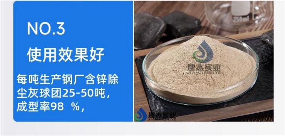 產品介紹:產品介紹:建杰牌轉底爐脫鋅除塵灰專用粘合劑由多種高分子環保材料聚合而成,具有加量少、灰分小、粘接力強、成型率高、強度高,球團不崩解、高溫不粉化等特點,制備的球團耐高溫、還原性好、脫鋅率高、金屬化率高。應用范圍:適用于鋼廠含鋅除塵灰,如高爐干法……